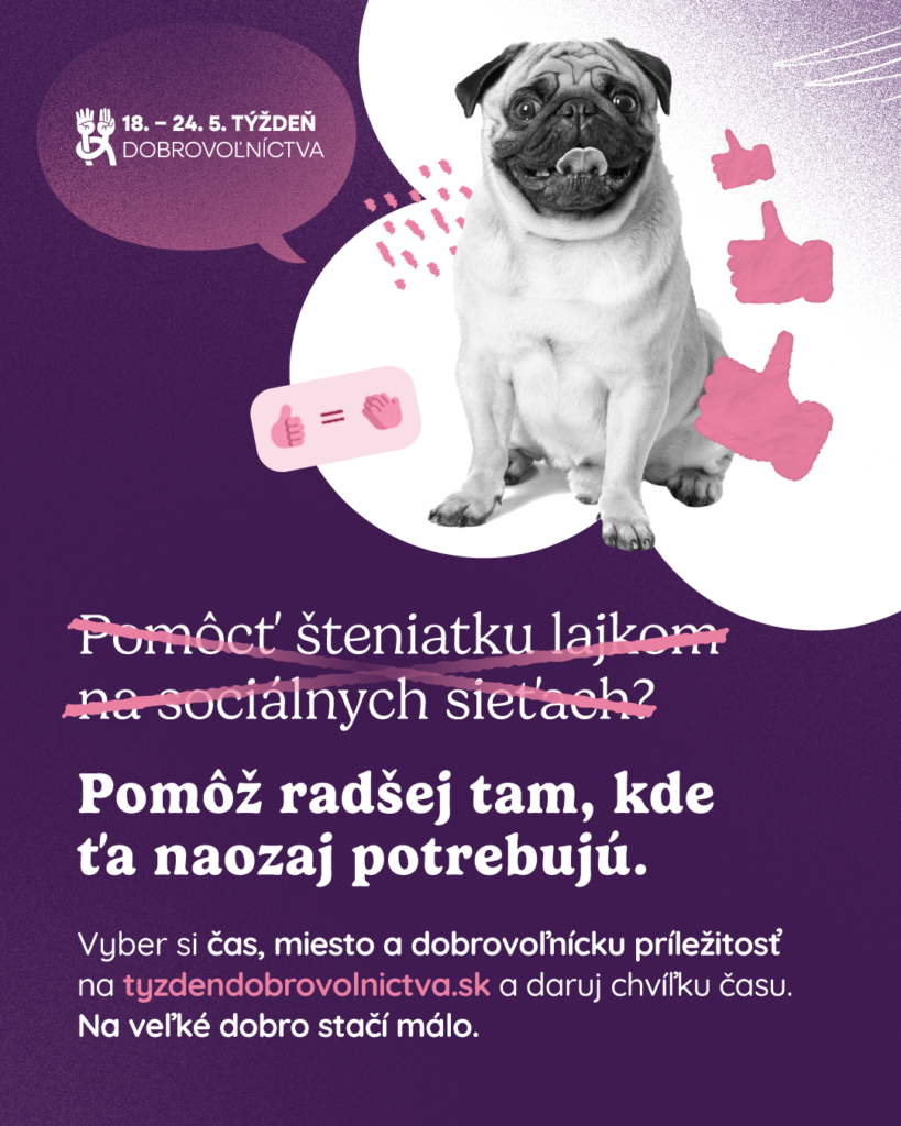 Mottom už 18. ročníka kampane je „Na veľké dobro stačí málo“. Veríme, že aj pár hodín pomoci môže byť začiatkom pozitívnej zmeny. Tento májový týždeň bude opäť patriť ľuďom, ktorí svojím časom a energiou menia svet okolo nás.